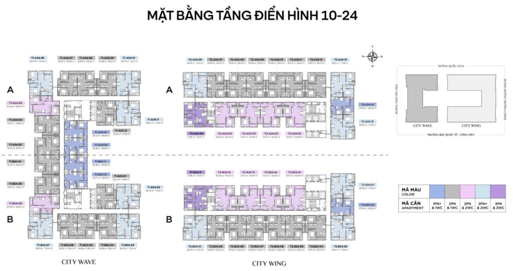 – 2PN – 1WC: 63 – 64 – 67 m² – 2PN – 2WC: 72 – 76 – 83 m² – 3PN – 2WC: 95 – 98 – 115 m² – Shophouse: 150 – 295 m²  |